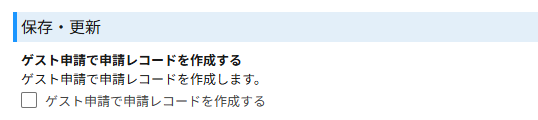 基本設定画面の「汎用申請画面」内にある「ゲスト申請で申請レコードを作成する」をオンにすると、ゲストユーザーが申請を行った際に、それに対応する申請レコードが作成されるようになります。