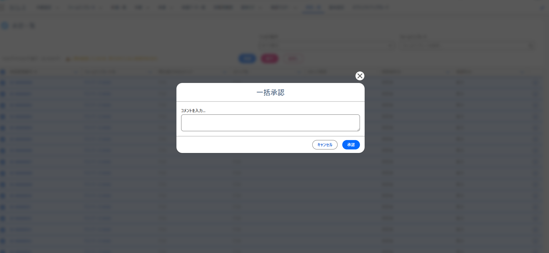 コメントを入力し、「承認」ボタン(却下の場合は「却下」)をクリックすることで処理が始まります。