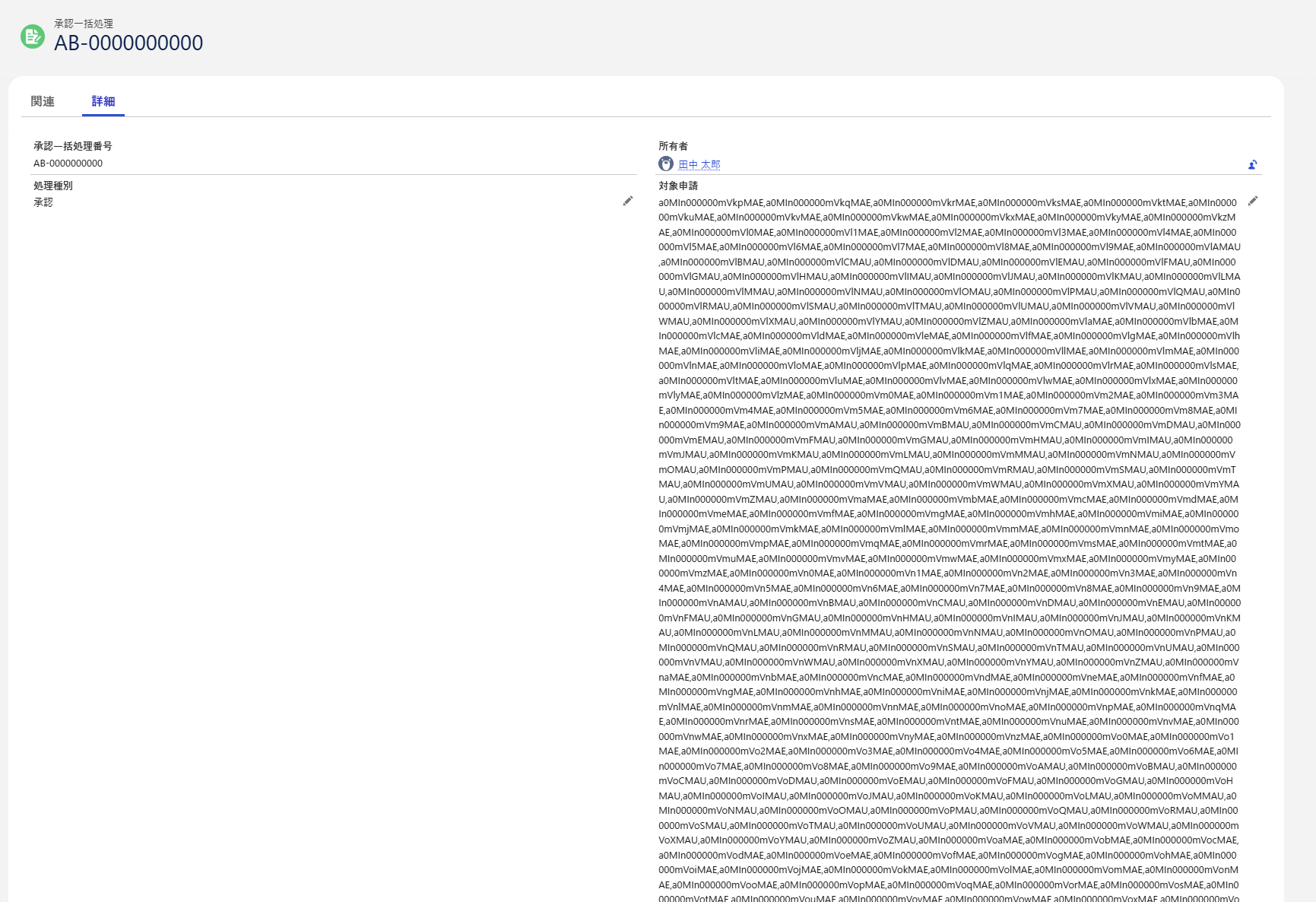 処理が完了したら、承認一括処理レコードが作成され、行われた処理と選択したレコードすべてのIdが記録されます。