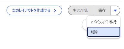 未保存の変更がある場合、ボタンのラベルが 「保存して次のレイアウトを作成」に変わります。 クリックすると保存確認ダイアログが表示され、保存後に新しいレイアウトが作成されます。 詳しくは 未保存の変更がある場合のページ移動 を参照してください。